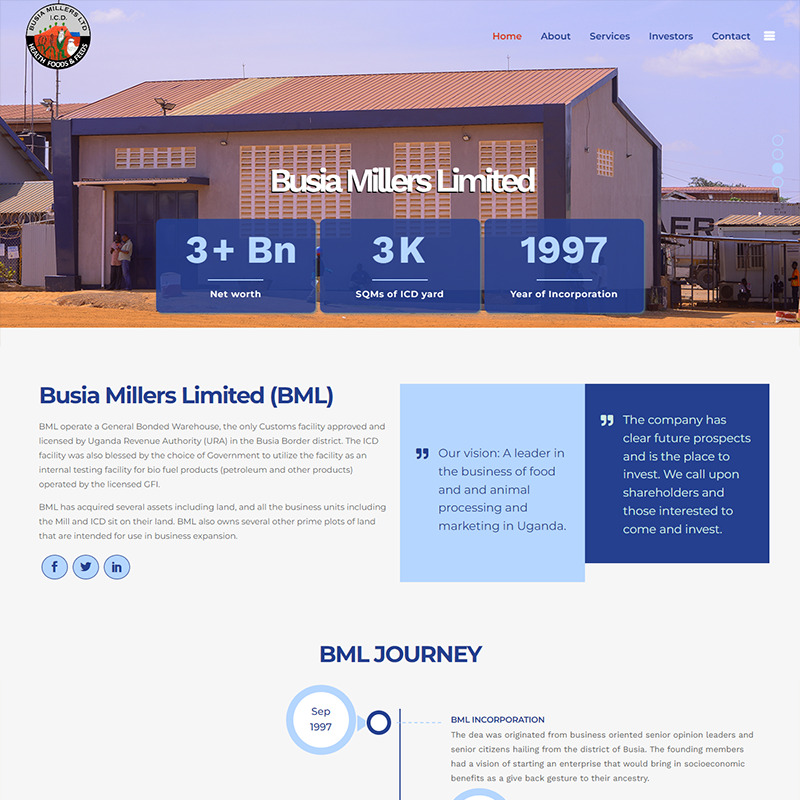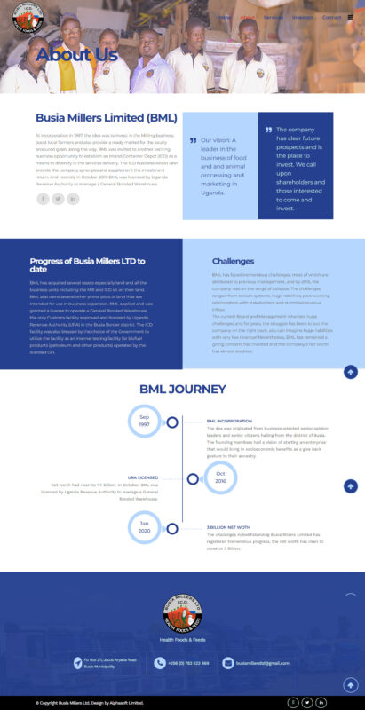 In 2022, we had the privilege of working with Busia Millers Ltd, our contribution to the project involved web development services for Busia Millers Ltd. We aimed to create an informative and user-friendly website that showcased their milling operations, emphasized their commitment to supporting local farmers, and facilitated efficient communication with potential customers.