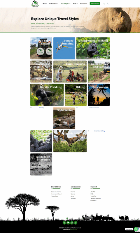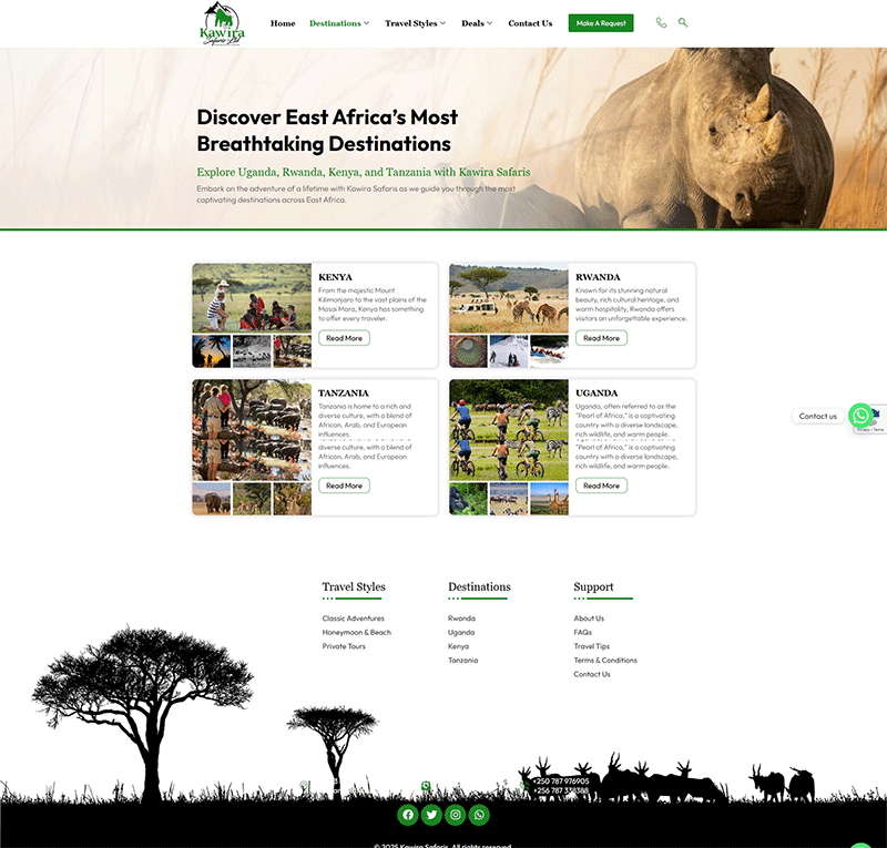 Our goal was to create a unique and captivating online presence that captured the essence of Kawira Safaris’ once-in-a-lifetime travel experiences. Through our expertise in custom theme development, we enhanced the visual appeal and functionality of their website, ensuring a seamless and immersive experience for travelers seeking remarkable adventures in East Africa.