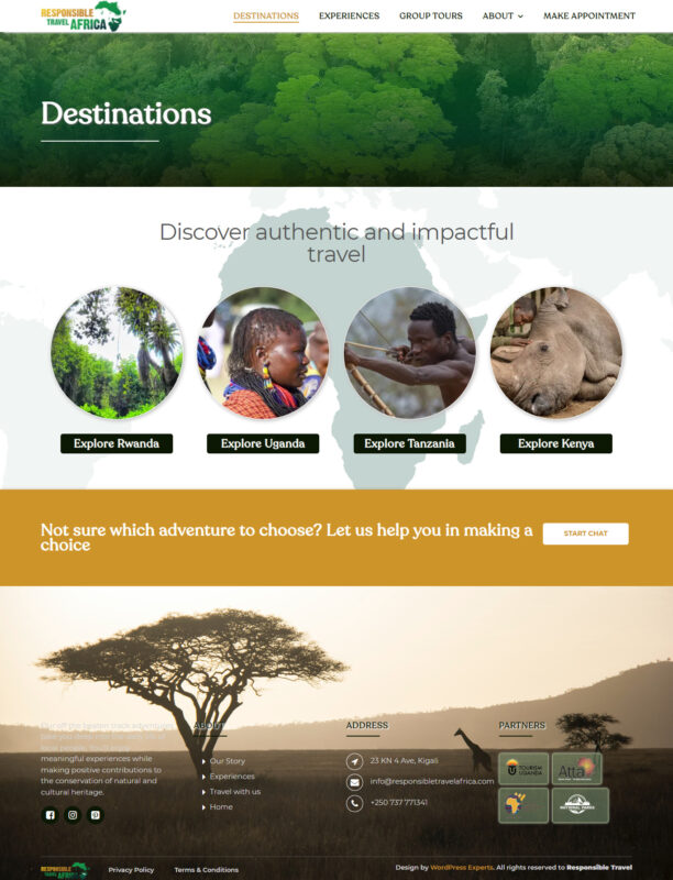 The goal of this project was to create a visually appealing and user-friendly website that showcases the unique experiences and services offered by Responsible Travel Africa Ltd. The project involved web design and custom theme development to ensure a seamless online presence for the company.