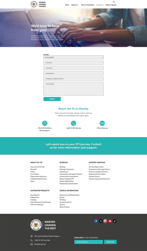 We partnered with the Science, Technology, and Innovation Secretariat of Uganda to design a themed WordPress design that reflects their mission to drive science-led economic transformation. The site showcases Uganda’s STI vision, strategic goals, and over 100 innovation projects across industrial value chains.